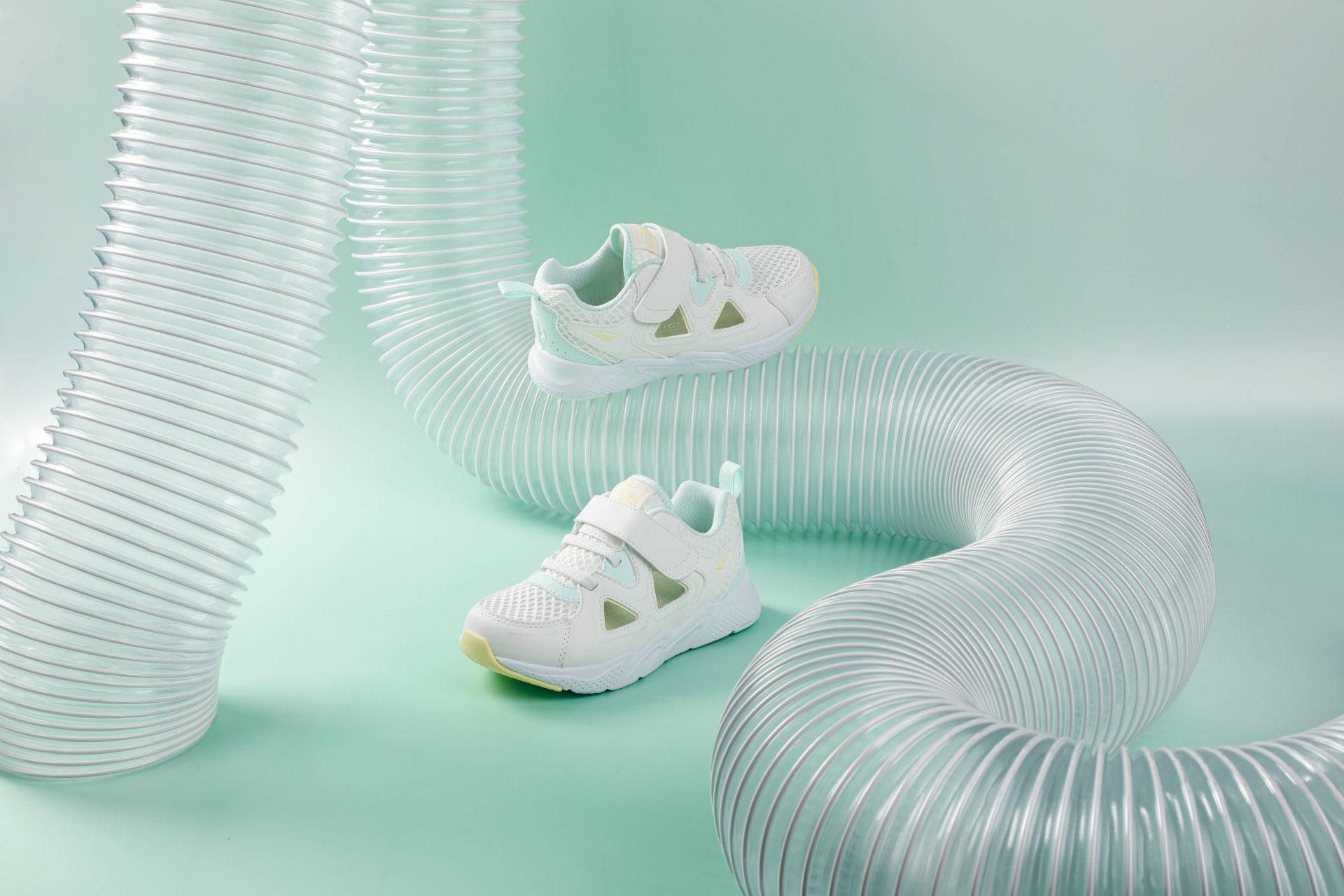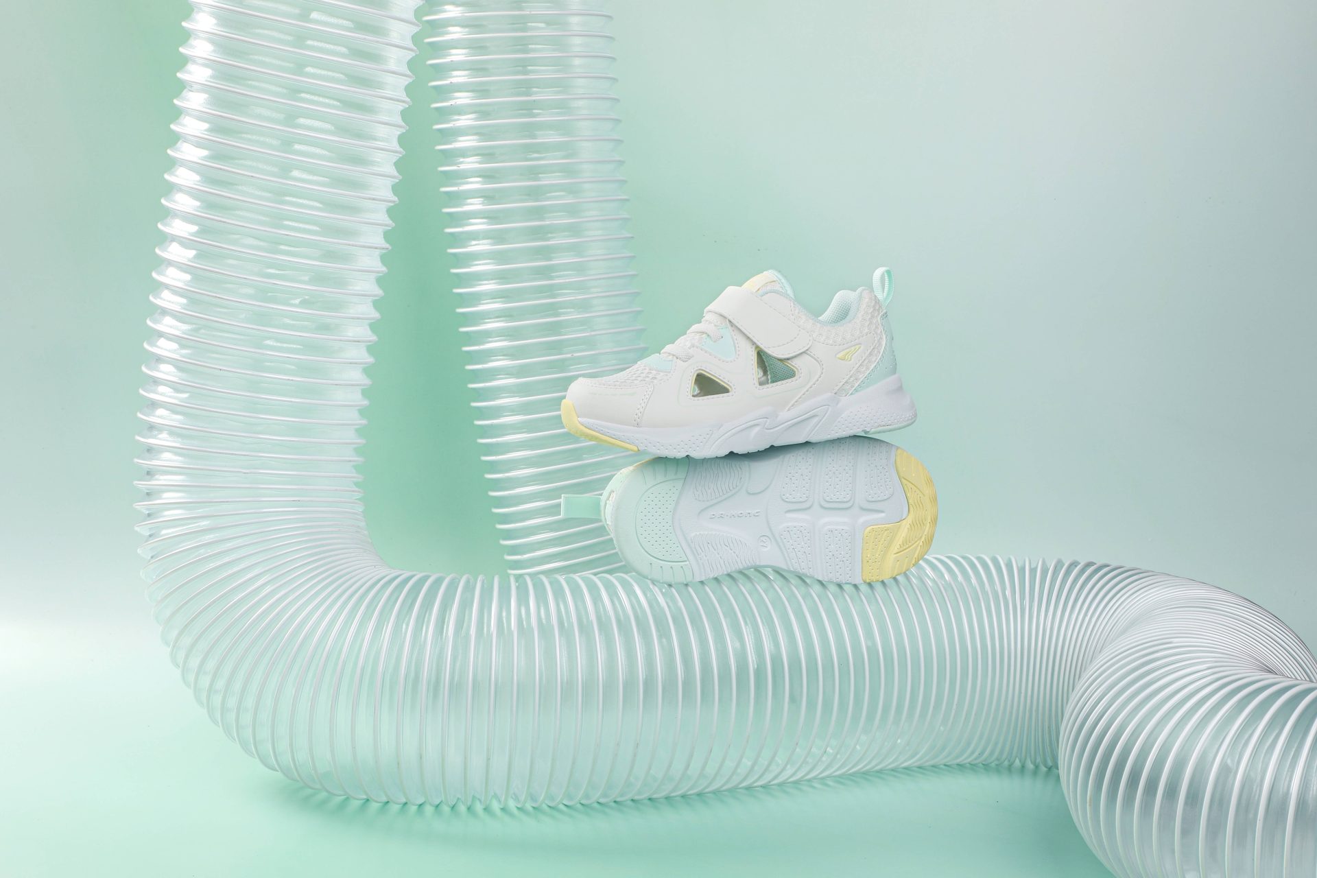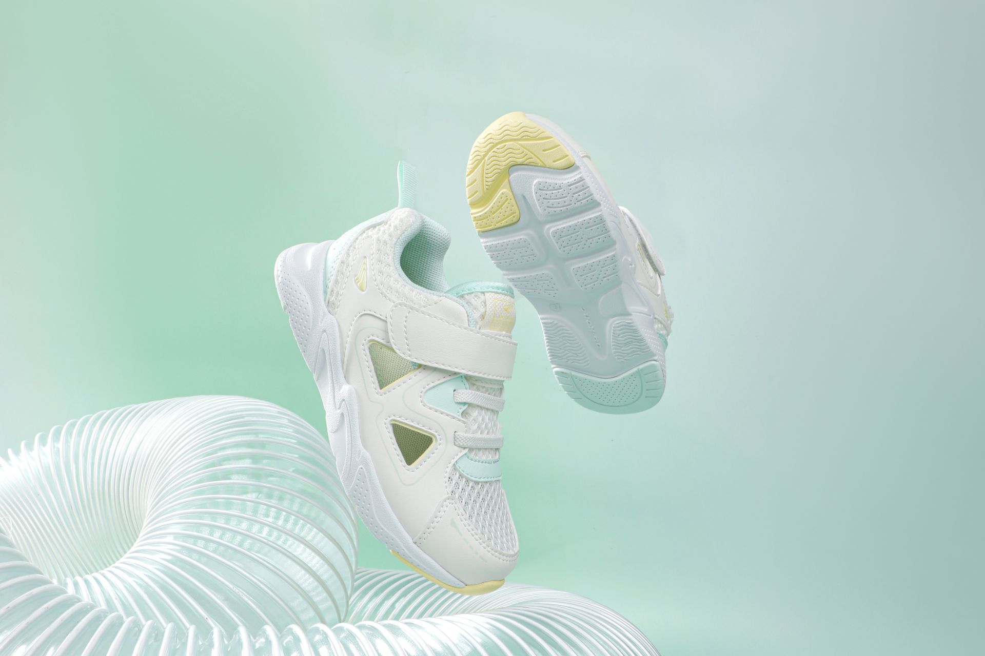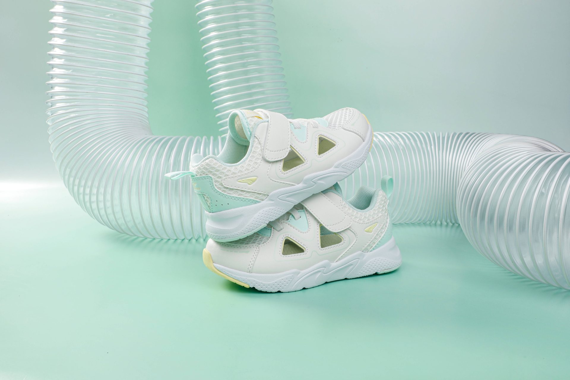 Light mint, white, and yellow sneakers